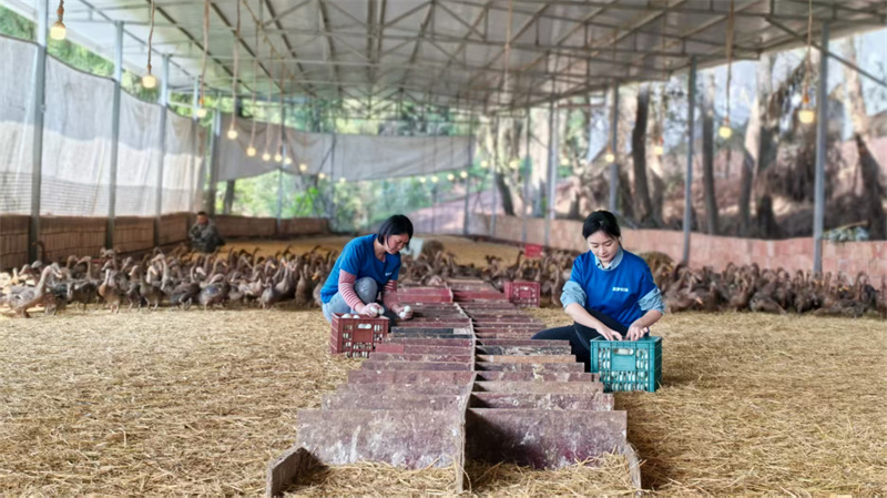 初见两位女孩时,她们正和农场工人一起,眼神专注、动作熟练地捡拾鸭蛋。一枚枚被拾起的鸭蛋在鸭舍灯光的照射下泛起淡淡光泽,承载着她们的梦想和对农场的满满期待。