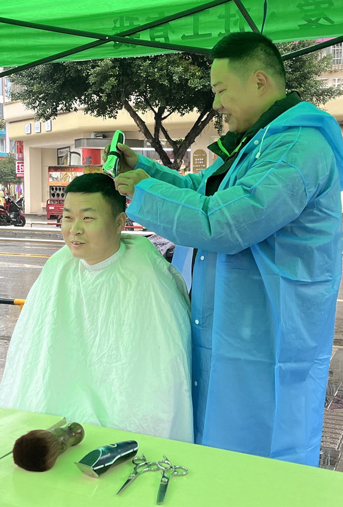 “今天来免费理了发,服务很好,活动办得也很棒。”在爱心义卖摊位购物的张天明说,买这些实用物品,既能自用,又能做公益,一举两得。
