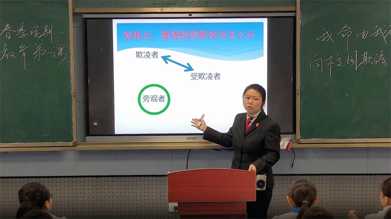 新学期伊始,校园安全问题再次成为社会关注的焦点。近日,广安市邻水县人民法院执行局副局长、民建广安市委会第一支部积极分子欧龙娟走进邻水县鼎屏初级中学,以“随哪吒一起,向校园欺凌说‘不’”为主题,为学生们带来了一堂生动且深刻的法治教育课。