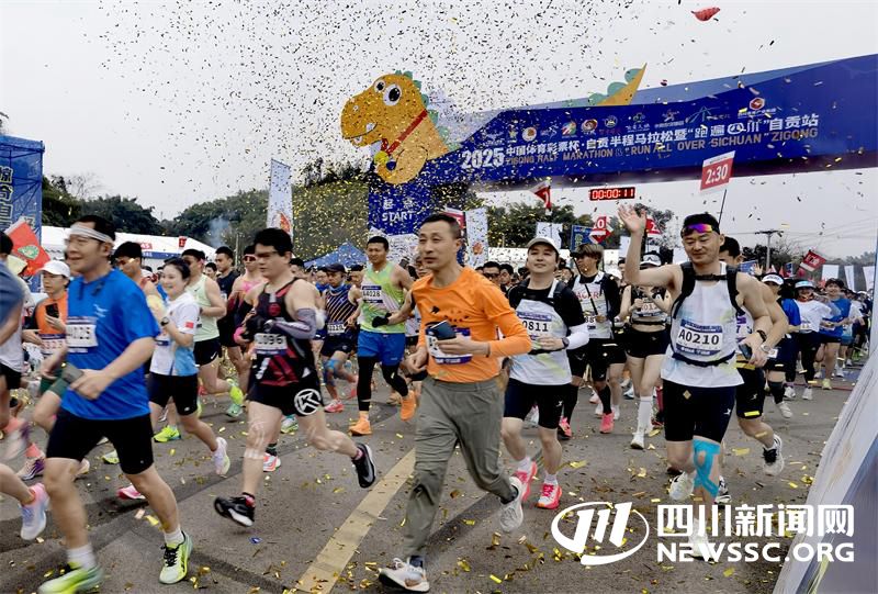 3月9日8时30分,2025中国体育彩票杯·自贡半程马拉松暨“跑遍四川”自贡站,在大安区青龙湖水利风景区鸣枪开赛。吸引了全球9000名跑者齐聚自贡,其中半程马拉松与欢乐跑项目各4500人,参赛规模创新高。