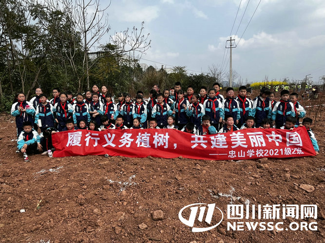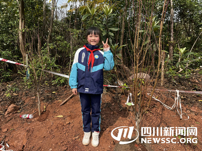 人群中,泸州职业技术学院园林工程技术专业教师王钊带着儿子王鸿哲格外忙碌。连续15年投身义务植树的他,不仅带动学生实践专业知识,更因一条朋友圈促成儿子班级的集体参与。“这次我们班种了100棵龙柱碧桃,孩子们亲手栽下树苗,既体验了劳动的快乐,也埋下了环保的种子。”王钊说道。他的儿子、忠山学校四年级学生王鸿哲兴奋地说:“我觉得这次植树是个非常有意义的活动,让我感受到了植树的快乐,希望我的小树能长成参天大树!”