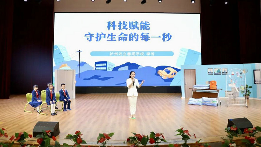 舞台上,泸州天立春雨学校的李芳聚焦家庭防震总动员,与学生开启了一场紧张有趣的VR家庭地震逃生模拟体验。他们在实景模拟、互动问答中,送上了一份实用的家庭防震指南,也将“科技防震 畅想未来”的美好愿景传递给现场的小朋友们,鼓励大家努力学习,共筑韧性未来。