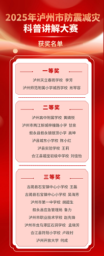 最终,经过激烈的角逐,泸州天立春雨学校李芳,泸州师范附属小学城西学校肖琴容获得本次大赛一等奖,将代表泸州参加四川省防震减灾科普讲解大赛。