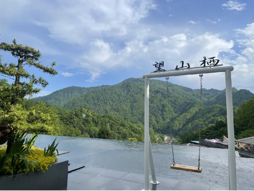 “扩建时特意设计了这块水天相接的天空云镜。”杨盛雨指着窗外搭建的无边水景,“兴业银行成都都江堰支行的文旅顾问建议我们用‘山水对话’的方式,将青城山的氤氲和春日生机结合起来。多亏兴业银行发放的100万元‘民宿贷’,客房内部也更新升级了智能马桶、地暖和传统茶台设计,让客人宾至如归。”如今几乎每天满房是游客对民宿提质升级成效的最好认可。