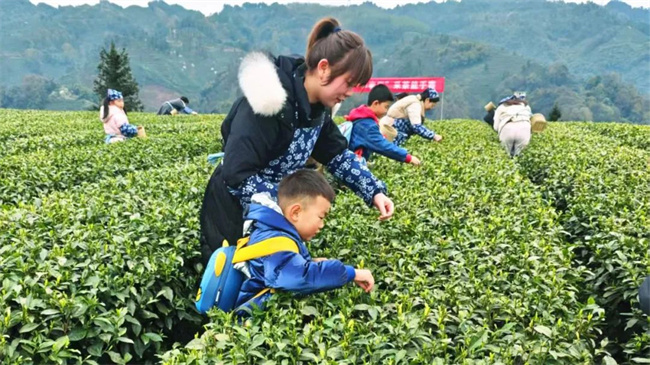 与此同时,茶园春趣活动也在夫妻树区域火热进行。参与者们穿上采茶服饰,背上竹篓,严格遵循 “一芽一叶” 的标准,沉浸式感受采茶的乐趣。20 分钟的采摘后,根据茶叶的质量和重量评选出的 “茶香家庭” 获得了不同等级的奖品。