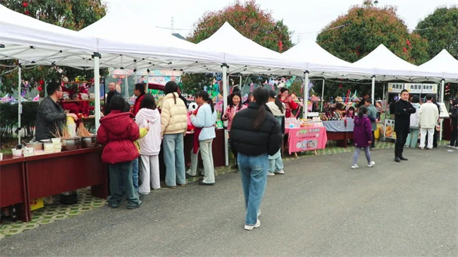 除了精彩的活动环节,现场还设有文艺汇演和特色小吃市集。一支支文艺队伍轮番上台,载歌载舞,赢得台下观众掌声阵阵。特色小吃市集上各种美食、农副产品琳琅满目,游客们边吃边游玩,尽享春日好时光。